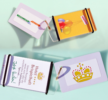 Apropos "Rohling": Wenn Sie die Karte unbedruckt bestellen, sparen Sie am richtigen Platz, weil es sehr viel wirtschaftlicher und werbewirksamer ist, eine unbedruckte Chipcard / Transponderkarte zwischen zwei jederzeit aktualisierbaren Ausdrucken zu platzieren.